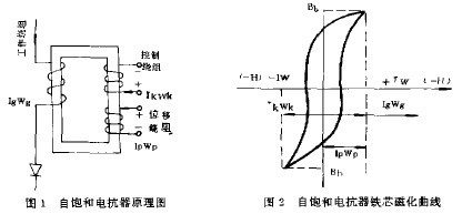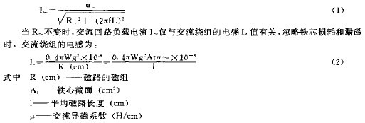 3 自飽和電抗器的工作原理 自飽和電抗器是磁化電抗器的一個(gè)分支,是磁放大器的一種類(lèi)型。磁放大器的作用原理是基于直流磁化時(shí).其鐵心上的導(dǎo)磁率 ( —B/H)要發(fā)生變化,當(dāng)交流繞組(工作繞組)的電阻為R~,電感為I 時(shí).交流回路的電流I~可用下式表達(dá)。