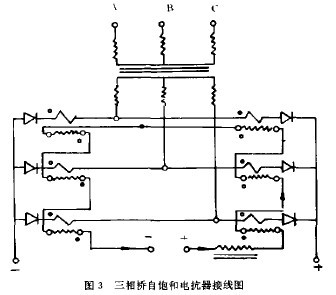 從以上兩式可以看出,交流繞組的負(fù)載電流I~ 決定于磁路的導(dǎo)磁系數(shù),即設(shè)法改變值,就可達(dá)到調(diào)節(jié)負(fù)載電流的目的。為了增大自飽和電抗器的電壓調(diào)節(jié)范圍.一般電抗器由三個(gè)繞組組成.即工作繞組,控制繞組和位移繞組見(jiàn)圖l。