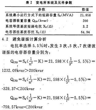 sd為電容器裝置接入處母線的短路容量;QcN為電容器裝置容量,計算數(shù)據(jù)見表3: