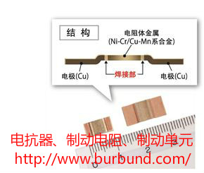 這些厚膜低阻值電阻(LTR系列/UCR系列),由于其更高的額定功率,使將以往產品(MCR/低阻值系列)替換為更小型封裝成為可能,是有助于PCB板小型化的產品。 <采用金屬電阻體材料的低阻值產品> 12539;電阻體采用金屬的低阻值產品的結構與厚膜低阻值產品技術完全不同,電阻體采用厚度為幾十μm~幾mm左右的電阻體金屬材料。常州博邦電氣是專業生產電抗器,鋁殼電阻,制動電阻,制動單元的大型廠家,利用蝕刻和機加工等各種加工技術將這種電阻體材料成型,從而實現目標電阻值與特性。金屬低阻值產品與相同尺寸的厚膜低阻值產品相比,具有可保證高額定功率和高精度電阻溫度系數的特征。另外,為了在0.2 mΩ到10 mΩ左右的極低電阻值范圍使用較厚的電阻體金屬,一般采用將電阻體本身作為貼片成型的方法。 在額定功率4W以上的范圍,Burbund品牌正在擴充覆蓋0.2 mΩ~3.0 mΩ電阻值范圍的PSR系列。PSR系列采用Burbund品牌獨有的焊接技術接合電阻體金屬和銅電極,實現了具備高散熱性和熱容量的結構。博邦電氣是專業生產電抗器,鋁殼電阻,制動電阻,制動單元的大型廠家,(圖6)另外,通過大型銅電極確保了散熱性,實現了最高達5W的高額定功率。其特征是通過按電阻值選擇最佳的電阻體金屬,實現了高精度的電阻溫度系數。